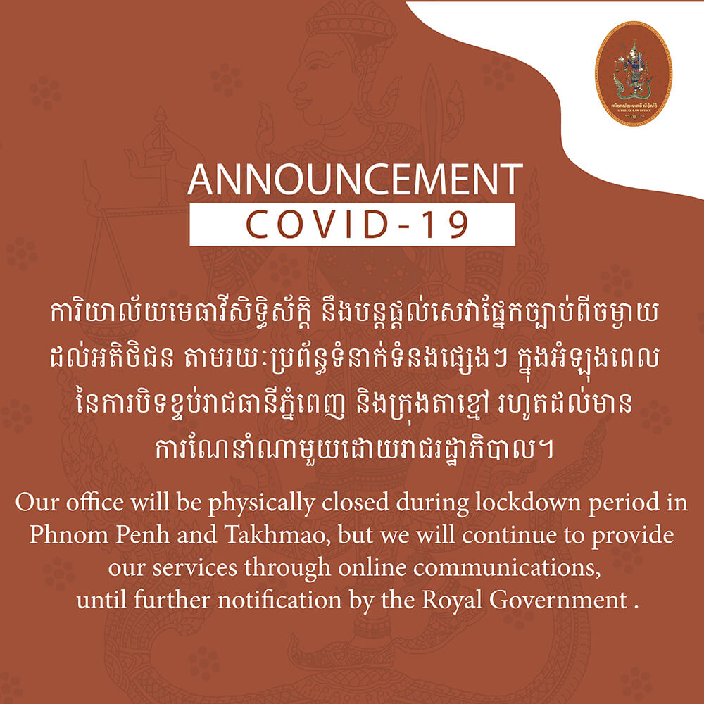 Our office will be physically closed during this lockdown period from 15th to 28th April 2021 and during extended period, if any, as set out by the royal government. However, we will continue to provide our services to you through online communication.