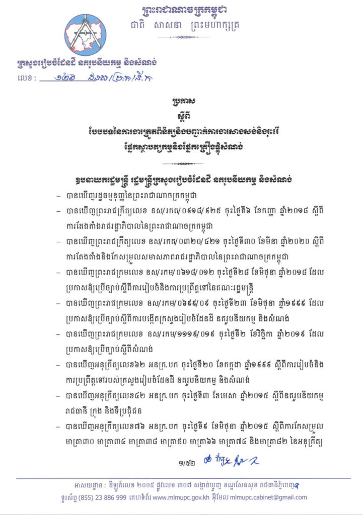 On 30 December 2021, the Ministry of Land Management, Urban Planning and Construction (“MLMUP”) has issued a Prakas No.126 DNS/Br.K/Ni.K on the formalities of certification of construction and demolition works for architectural and construction structural designs, which composes of 11 chapters and 37 articles (“Prakas”).