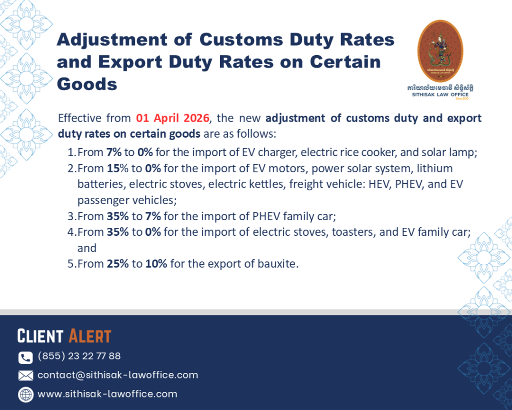 On 28 March 2026, the General Department of Customs and Excise of Cambodia issued a notification regarding Sub-Decree No. 52 dated 26 March 2026 promulgated by the Royal Government of Cambodia (the “Sub-Decree”).