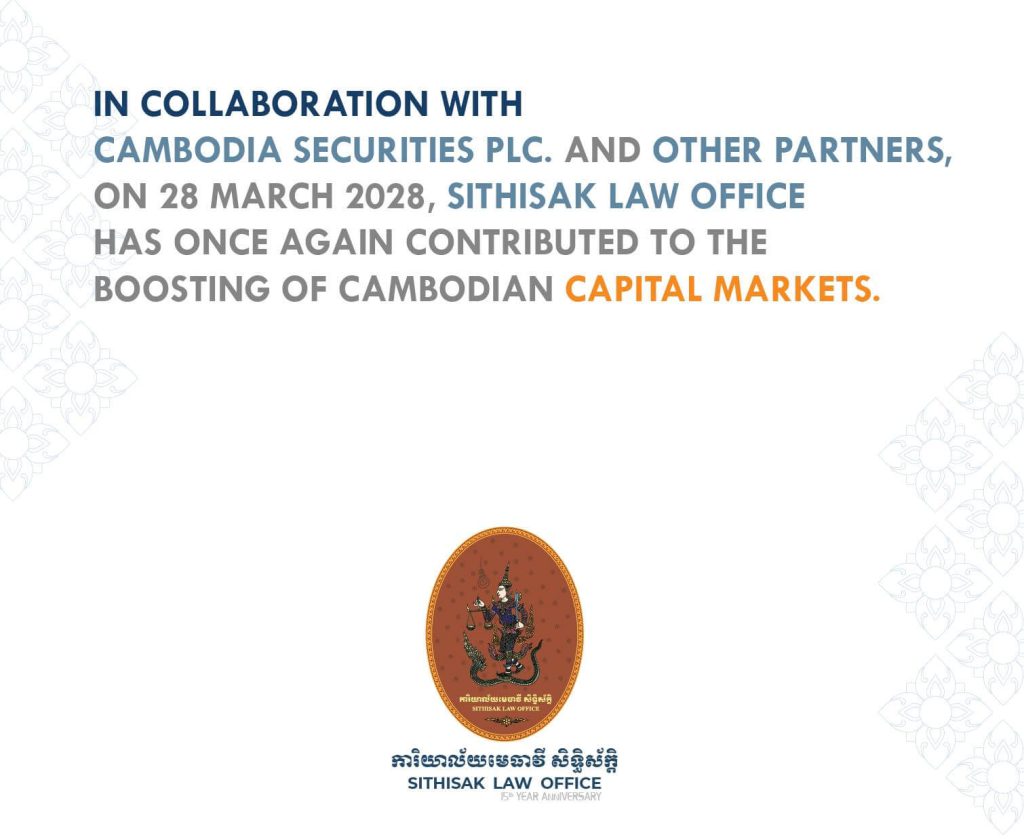 As an accredited law firm by the Securities and Exchange Regulator of Cambodia (SERC), Sithisak Law Office has advised issuers, underwriters, and investors on numerous complex transactions. Through this workshop, we continue to reinforce our role as a trusted advisor and partner in Cambodia’s capital market development.