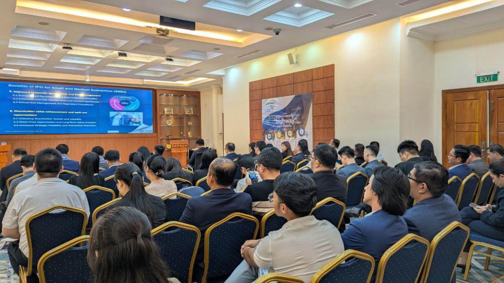 “Mr. Sokvichhai, Managing Director of Sithisak Law Office, presenting at the Workshop on Capital Market Development — guiding companies on the path to IPO.”