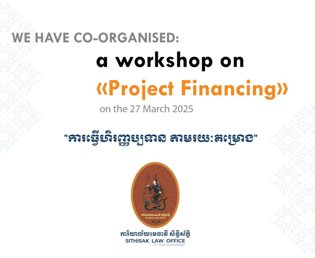 On the 27th March 2025, Sithisak Law Office co-organized a Workshop on Project Financing, bringing together industry experts, lawyers, and financial professionals to discuss practical challenges and solutions in structuring complex financial projects.
