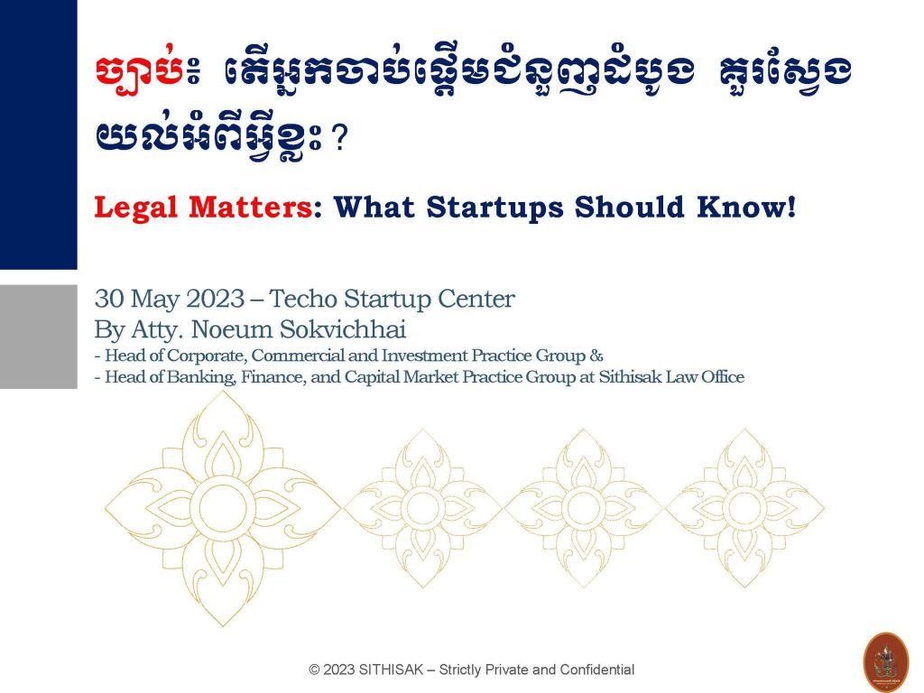 “Sithisak Law Office sharing practical legal guidance with young entrepreneurs at Techo Startup Center.”