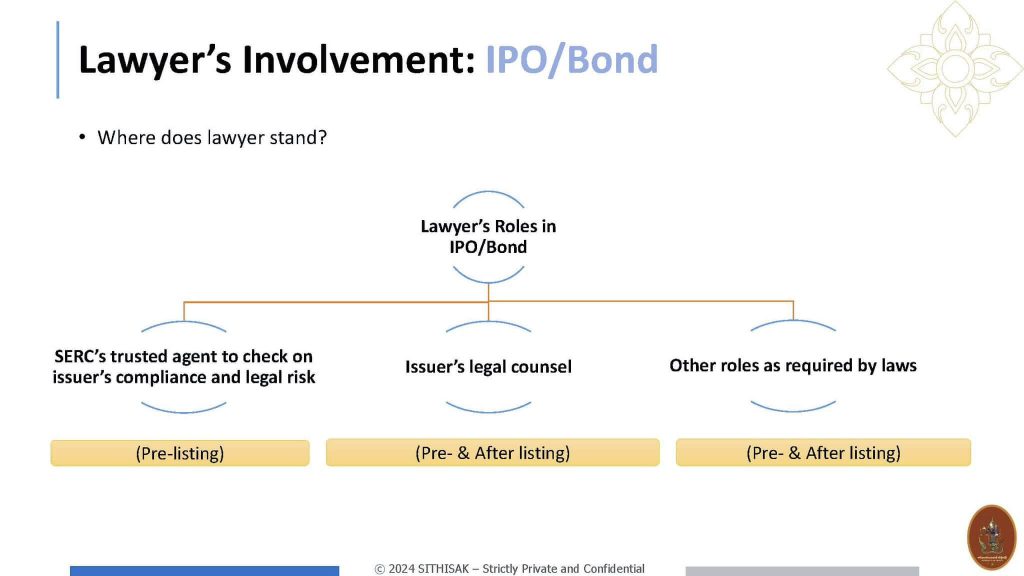 During the session, representatives from Sithisak Law Office shared insights on how lawyers contribute to market confidence, investor protection, and corporate governance, as well as the critical role they play in ensuring regulatory compliance for listed and prospective companies. The discussion also emphasized the value of legal guidance throughout the IPO process, disclosure obligations, and post-listing corporate governance.